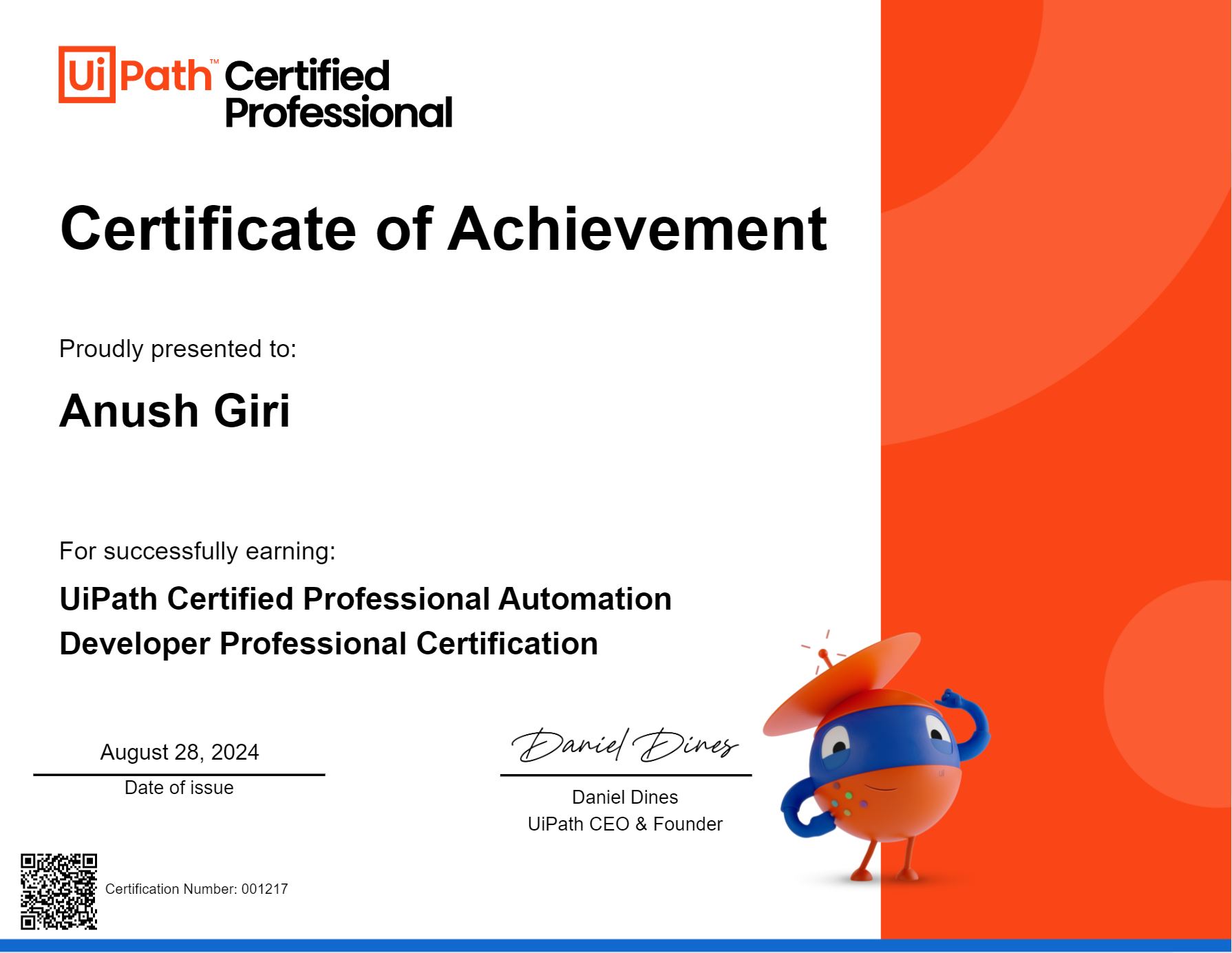 I am Anush GIRI, a highly experienced RPA UiPath developer with 7 years of expertise. Specializing in end-to-end automation solutions across industries, I lead projects that streamline business processes and enhance efficiency.