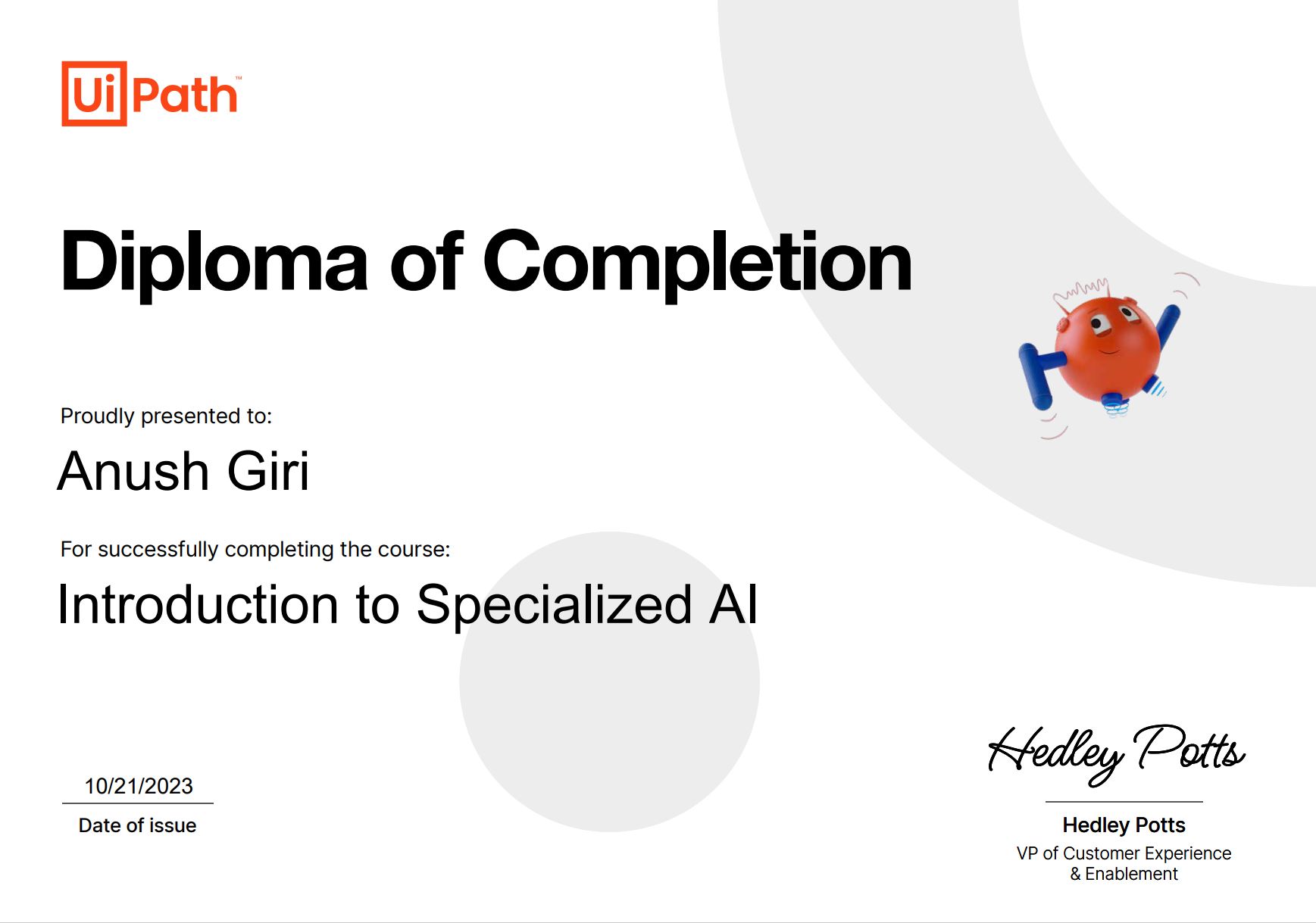 Industry Certifications (UiPath Advanced, UiARD)